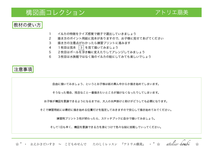 2ページ目・・「水族館の絵」イルカ 教材の使い方と注意事項