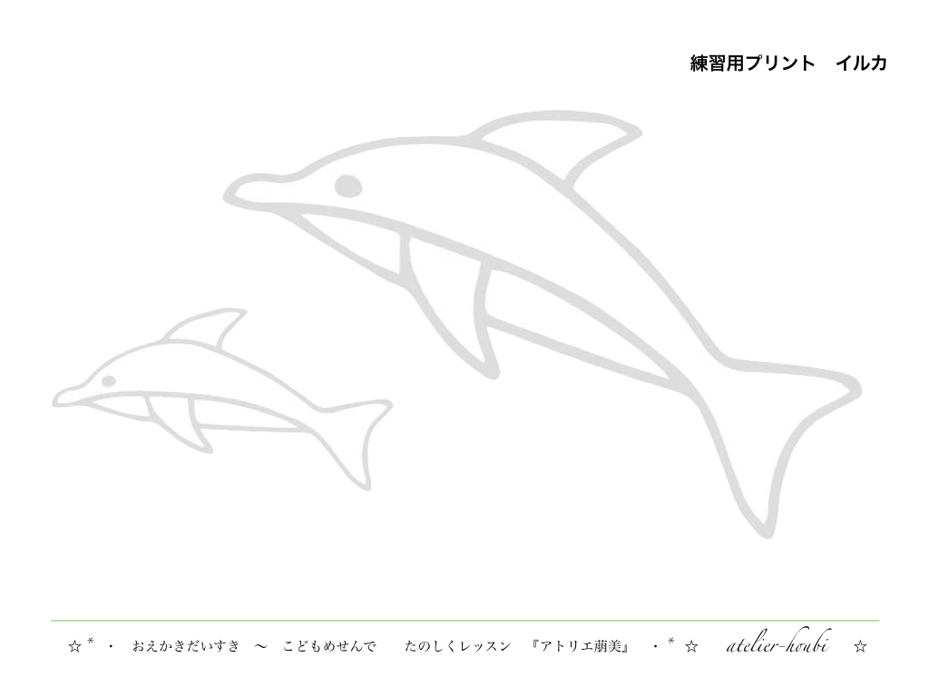 ここまで練習をすると、イルカが上手に描けるようになると思います。
